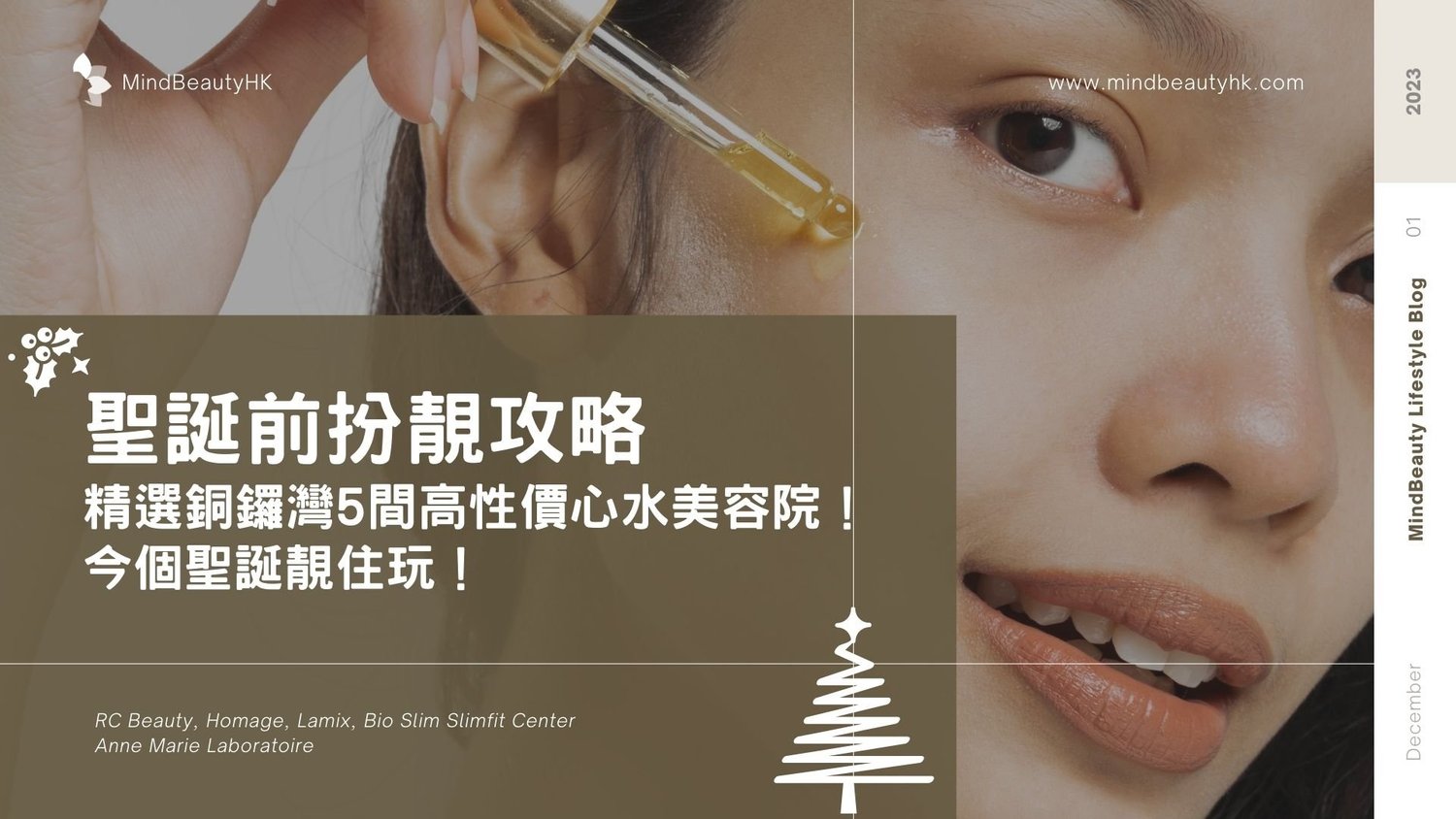 天氣比上年更早轉涼,又喺時候要迎接聖誕節啦!過聖誕節前緊喺要做足準備扮靚,先可以保持最佳狀態,靚住打卡靚住玩。今次 MindBeauty 就精選銅鑼灣5間高性價心水美容院,介紹一系列服務,等你由頭靚到落腳,今個聖誕派對上最出眾就喺你啦!